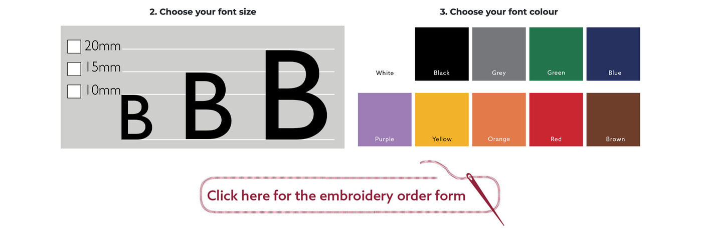If you are interested in bespoke embroidery, simply contact us with your requirements or fill in and return the order form below and our experts will happily send you a quotation.