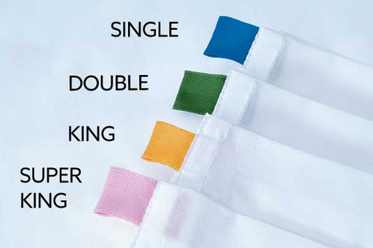 When you go to your laundry or linen cupboard, the tabs will quickly and easily show you what size the bed linen is so you don't get to the room and unfold a sheet, only to realise it's the wrong size!