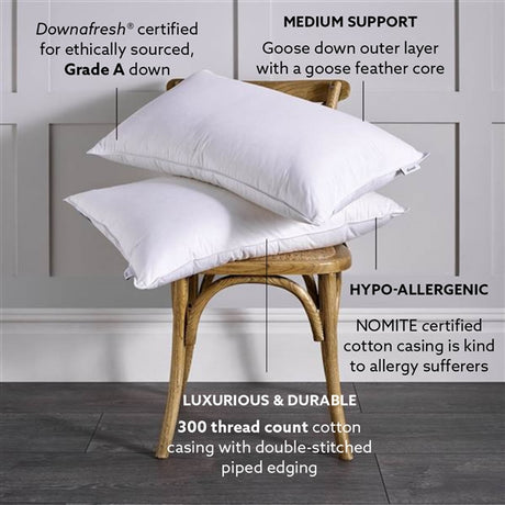 For a touch of indulgence, our Luxury collection provides both synthetic and natural fill options, all encased in 233-thread-count cotton. Choose from duck feather or goose down, both Nomite and Downafresh certified, or our ultra-soft Just Like Down synthetic alternative, crafted from recycled plastic bottles. With a non-allergenic filling, our Wash & Bounce pillows are made to withstand multiple washes without losing their comfort or form.
