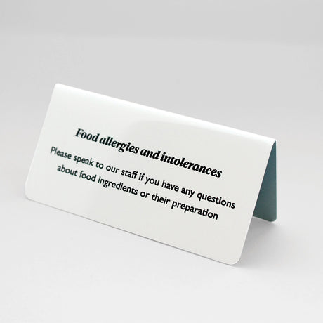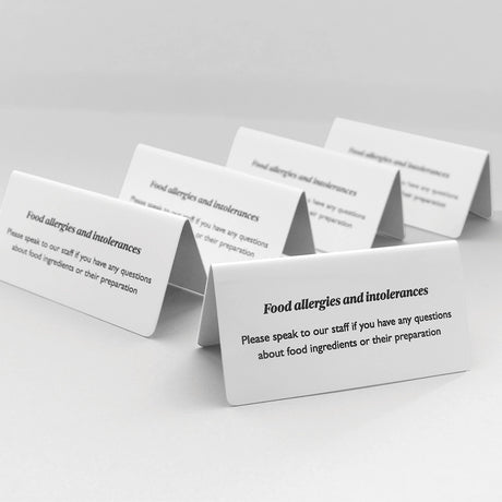 £18.35Inc VAT£15.29Ex VATUnit Price /UnavailableFood Allergies & Intolerances Aluminium Tent Sign - Pack of 5