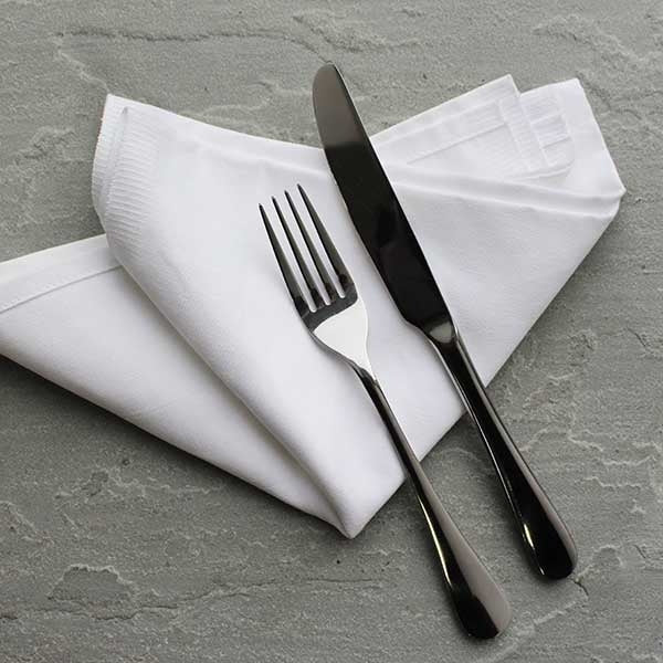 A selection of stainless steel cutlery, designed for catering and holiday let kitchens.