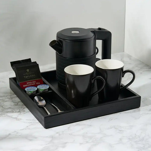 This Bamboo Room Tray is a compact, space-saving solution for guest rooms, it is thoughtfully designed to accommodate a kettle while keeping sachets neatly organised within integrated compartments. Crafted from bamboo, one of the world’s most sustainable materials, it offers a clean, modern aesthetic that complements any interior.