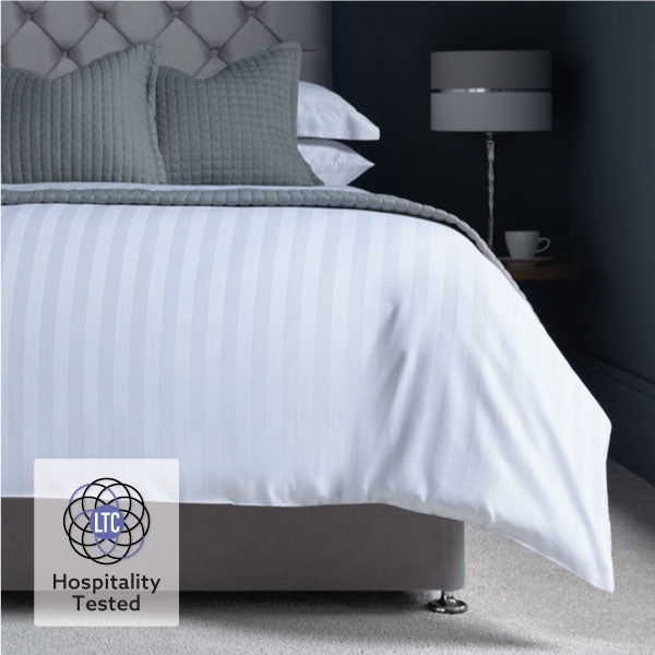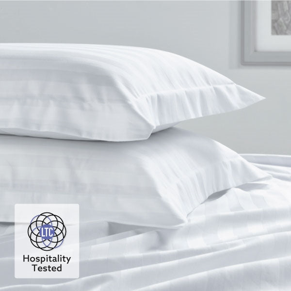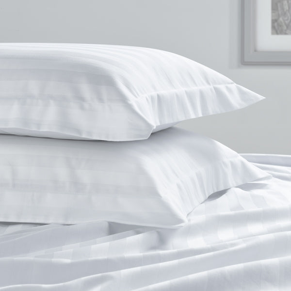 These 172 thread count white satin stripe Oxford-style pillowcases are made from a durable 50/50 polycotton fabric which is easy to care for, being both quick drying and easy to iron. Featuring a stylish one-inch wide satin stripe and made exclusively for Out of Eden, these pillowcases are popular with all types of accommodation provider, from hotels to holiday lets.
