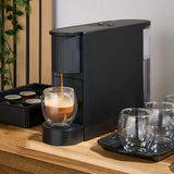 The Compact Hotel Coffee Pod Machine is stylish and easy to use with a slim and compact size to fit easily in hotel rooms. Compatible with Wheatleys Coffee Pods & Nespresso capsules, this compact machine fits perfectly in any guestroom. Its LED control buttons ensure an intuitive brewing experience, while the easy-to-clean components and capsule compartment make maintenance a breeze for housekeepers. A top choice for both guests and hoteliers, it elevates the in-room coffee experience.