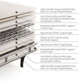Handcrafted in the UK, every material has been thoughtfully chosen to contribute to a sustainable future and offer a health-conscious experience for the user. Notably, the FSC-certified wood frame, GreenFR® fabrics, and a natural salt-based fire-retardant protection on the mattress ensure the absence of toxic chemicals, resulting in a harmonious blend of luxury, sumptuous comfort, and eco-conscious design.