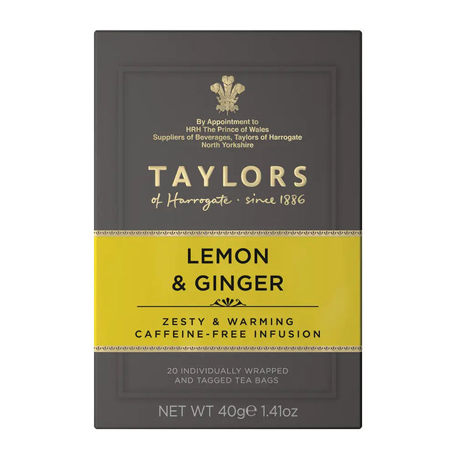 Supplied in a pack of 20, Taylors Lemon & Ginger Tea Bags are an efficient and elegant addition to your hospitality offerings, combining quality, taste, and thoughtful presentation in every cup.